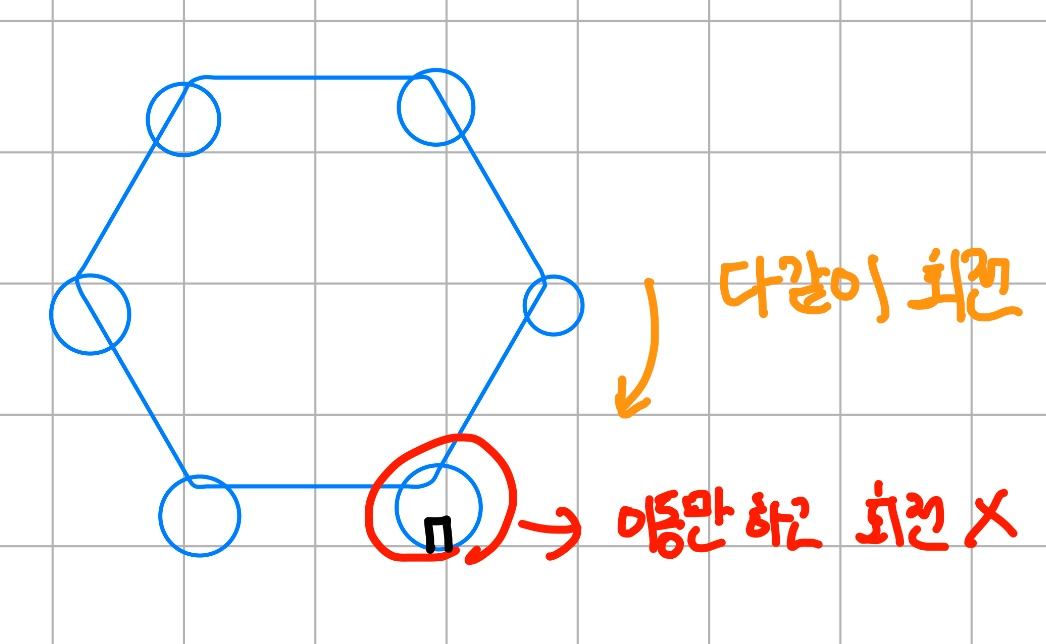 대관람차는 전체가 한번에 돌아가고, 이 안의 작은 칸 같은 부분들도 함께 돌아가야합니다.