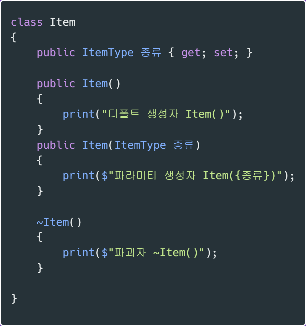 ~클래스의 이름 함수는 파괴자이며, 객체가 파괴될 때 호출된다