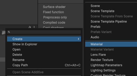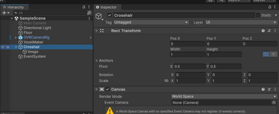 shader 우클릭후 material 만든다 / shader는 crosshair로 설정