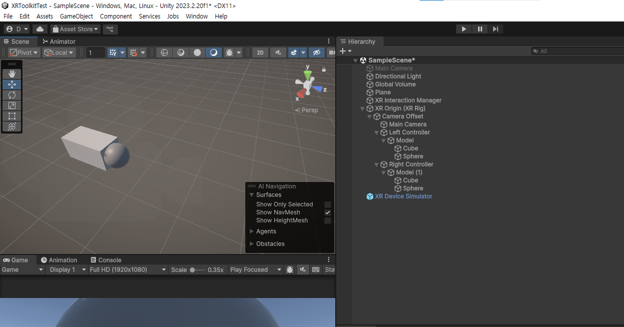 XR device simulator sample 받은거 프리팹 넣어주면 pc에서도 가능