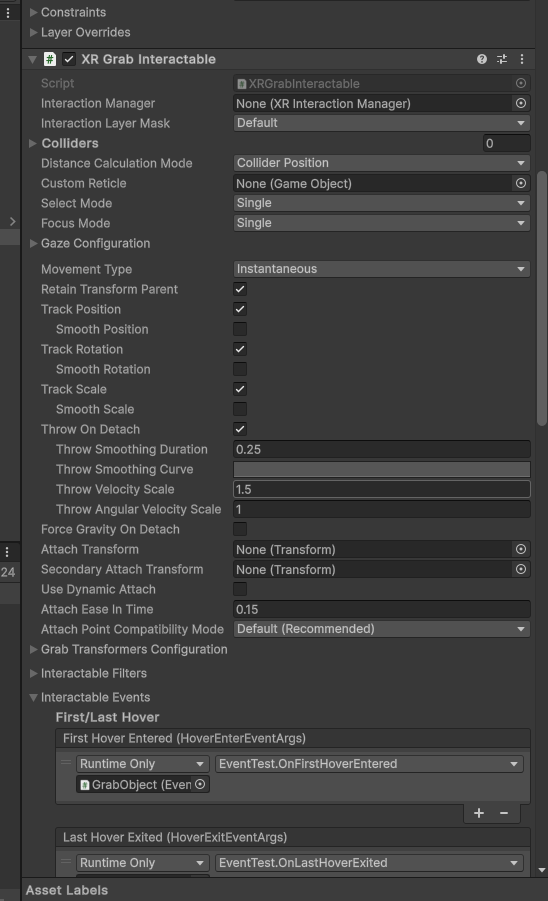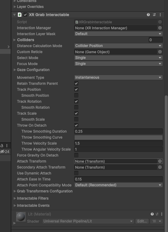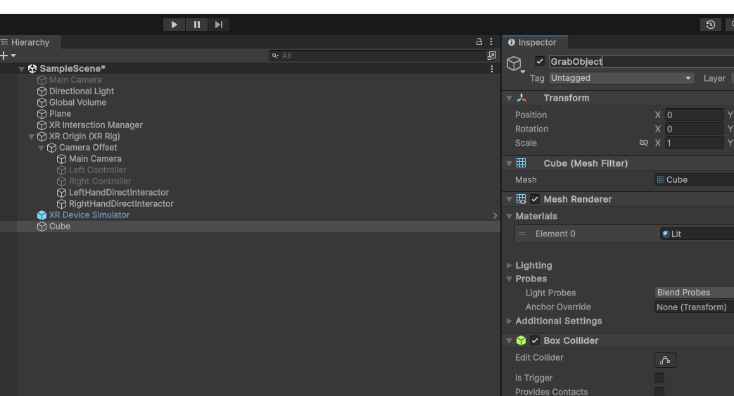 손에 잡히는 물체: XR Interaction 컴포넌트 필요
