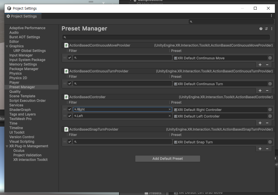 + 얘네도 왼쪽 오른쪽 맞춰서 Add Preset해주기