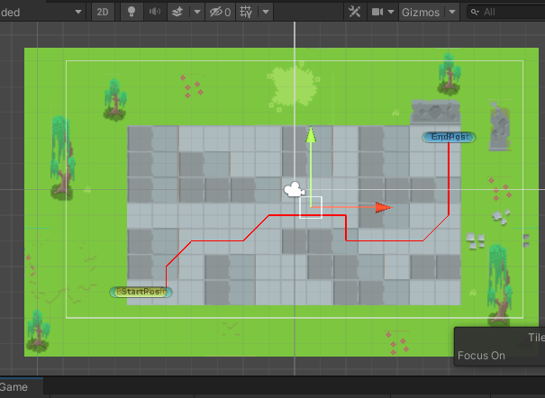 마지막으로 만들어진 길을 Scene 뷰에서 확인하기 위해 이를 작성해주고, button을 만들어 onclick시 길을 보이게 한다.