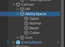 스테이지 이동을 구현하고, 적들도 만들어두니 첫 스테이지에 커비가 있는데 두번째, 세번째 스테이지의 적들이 움직이고 있었다 -> 쓸데없이 동작하고 있기때문에 이를 setactive false로 지정해 적을 안보이게 해주었다.