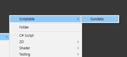 여러 종류의 총들을 구현할 수 있으므로, 변화를 더 쉽게 주기 위해 Scriptable Object로 선언해줄것이다