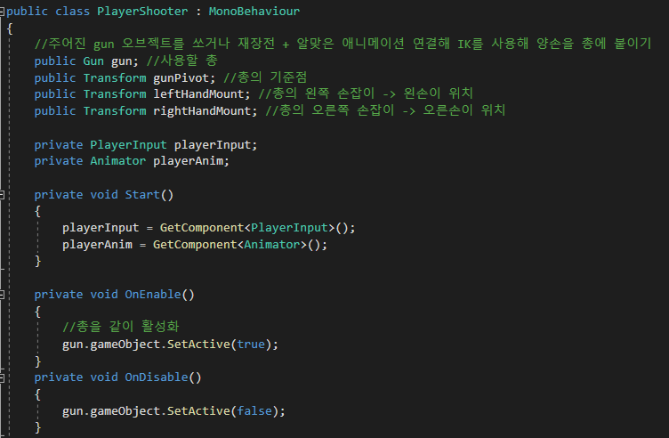 총을 쏘기위해 PlayerShooter script를 만들었다