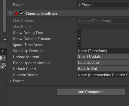 기존의 main camera에 cinemachine Brain camera component를 추가해준다