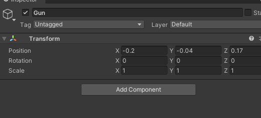 프리팹의 총을 unpack한 뒤 Gun Pivot의 자식개체로 불러와 위치를 잡아준다