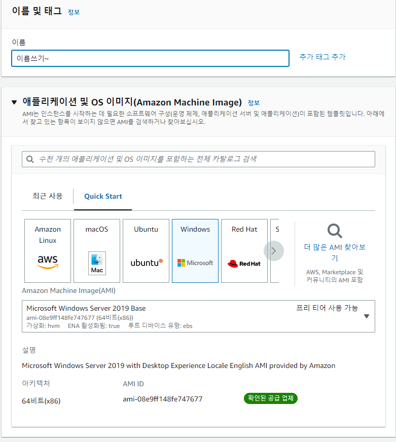 그리구 버전을 Microsoft Windows Server 2019 Base로 설정했ㅅㅂㅁ다