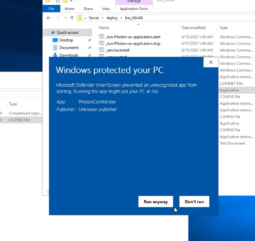 PhotonControl 실행해줍시다 (뭐 확인 그런거 안뜨고 끄기만 뜨면 more info > Run anyway 누르기)
