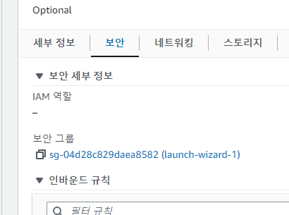 들어가서 살짝 내려주면 보안에 보안 그룹이 뜨는데 눌러주고