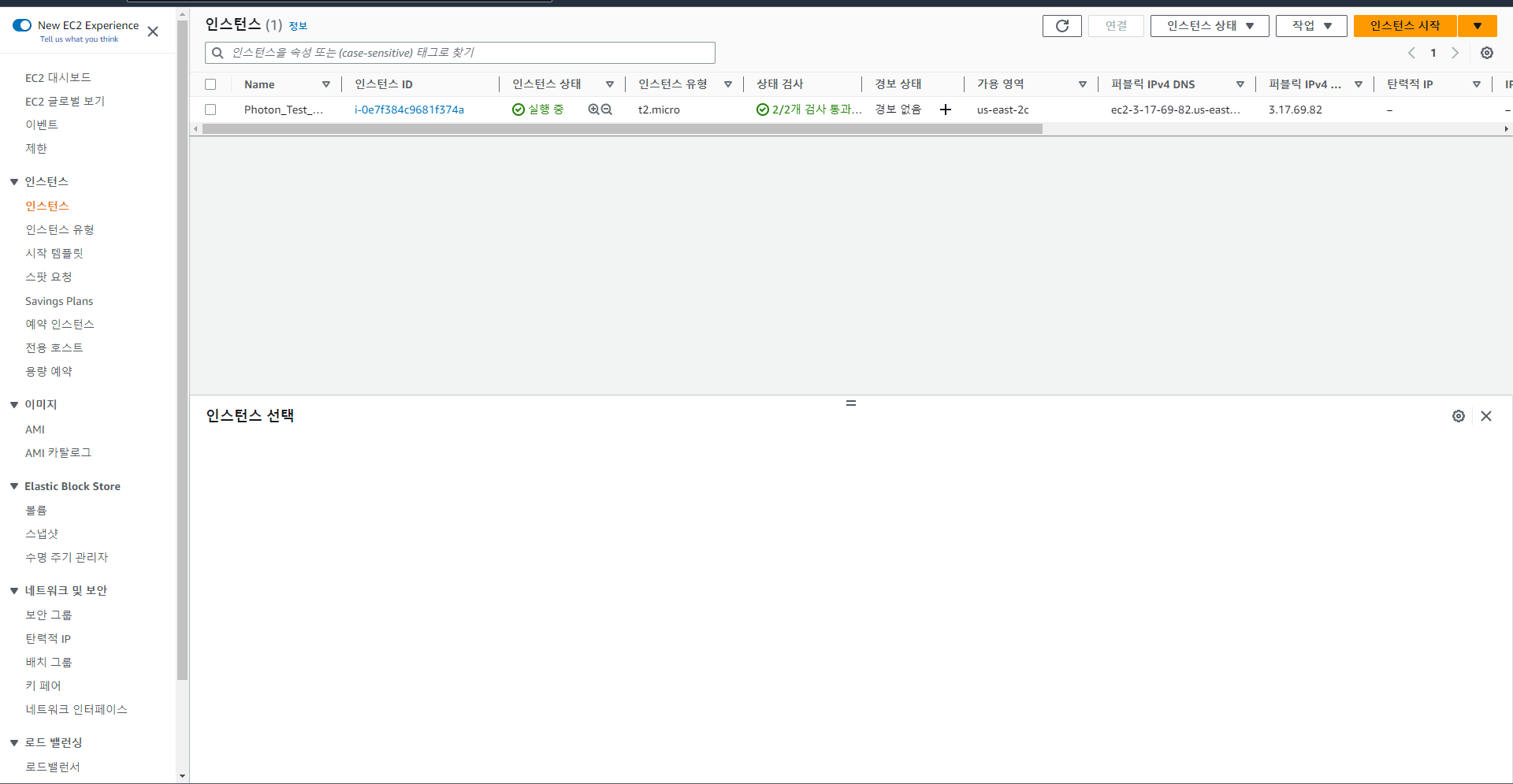 인스턴스창에 들어가면 위와같이 뜰텐데 파란색 인스턴스 ID를 눌러주자