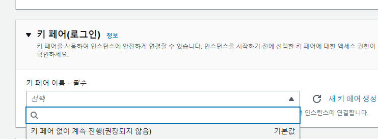 키 페어를 만들어줍니다! 대충 만들고 기억해두기~ 약속!