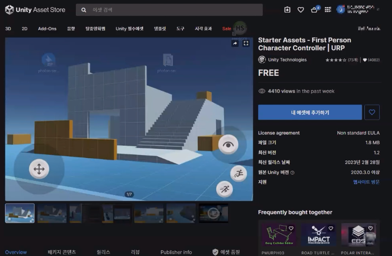 이제 예시를 위한 프로젝트를 하나 불러올건데 대충 없으니깐 asset store에서 받아주자
