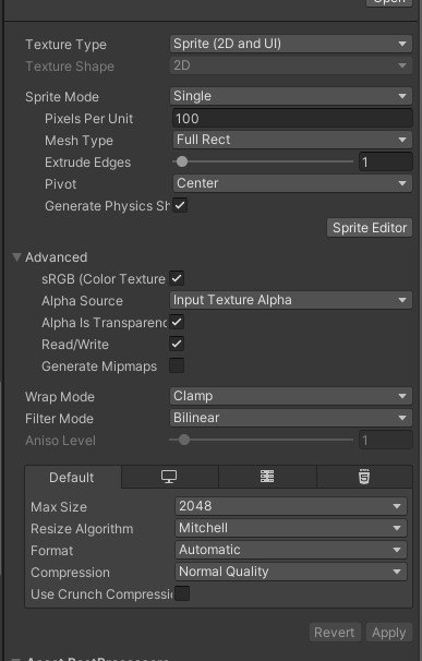 2. 이미지의 인스펙터창에 들어가서 설정을 바꾼다.