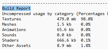 유니티 빌드 후 Build Report를 살펴볼 수 있다