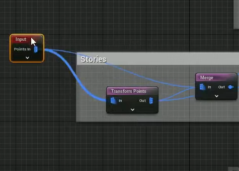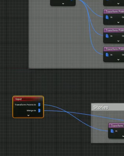 이렇게 남겨진 Points In 친구는 Stories에 있는 Merge랑 Transform Points에 이어주자