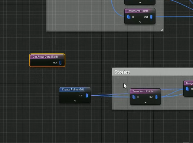 원래 Get Actor Data 이어서 층을 나눠주던 애를 Create Points Grid 쪽으로 둘 다 옮겨준다. (Ctrl 누른상태로 옮기면 편함)