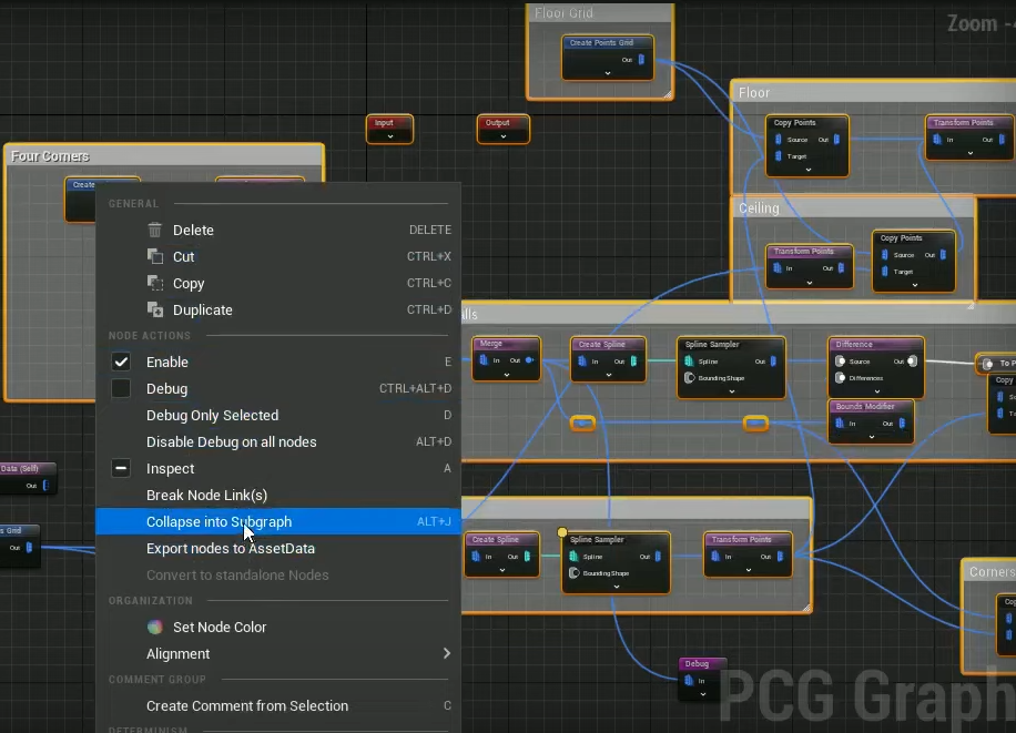 전체 노드 싹 잡고 (input, output, 위에서 만든 Create Points Grid 빼고) 우클릭 > 서브그래프로 접기 이럴거임 ㄱㄱ