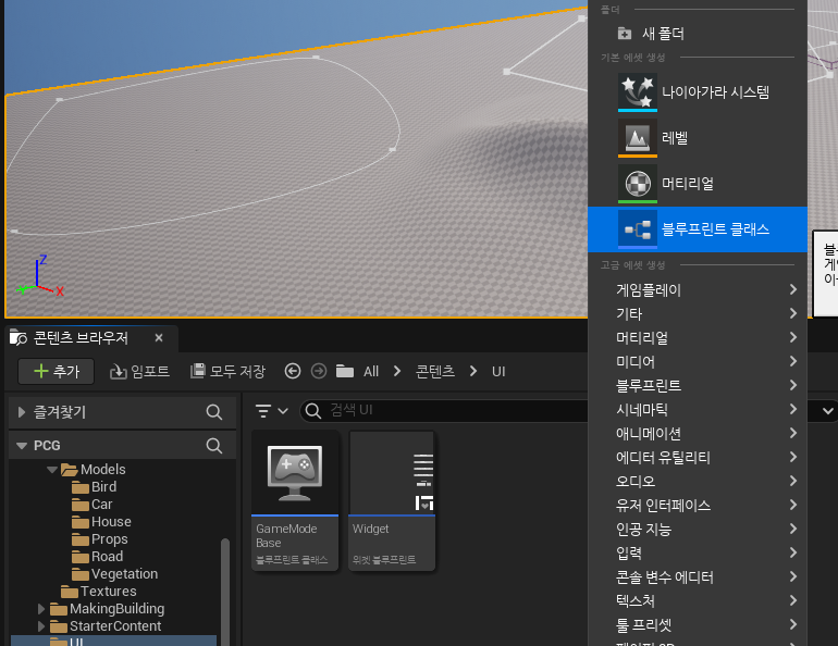 PCG를 이용한 부분에 UI를 적용하고 싶어 저런식으로 만들었다.
