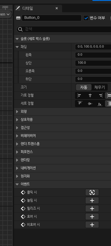 우측위의 변수 여부 체크해주고 이벤트에서 클릭시 옆에 버튼을 눌러주자