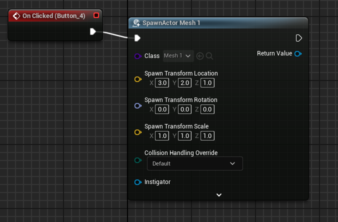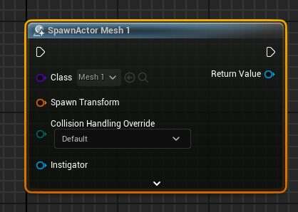 SpawnActor 노드와 연결하고 Class 부분에 본인이 만든 블루프린트 이름을 넣어주자.