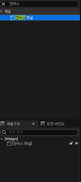 캔버스 패널 검색해서 좌측 아래 [Widget] 위에다가 끌어다 두면 된다